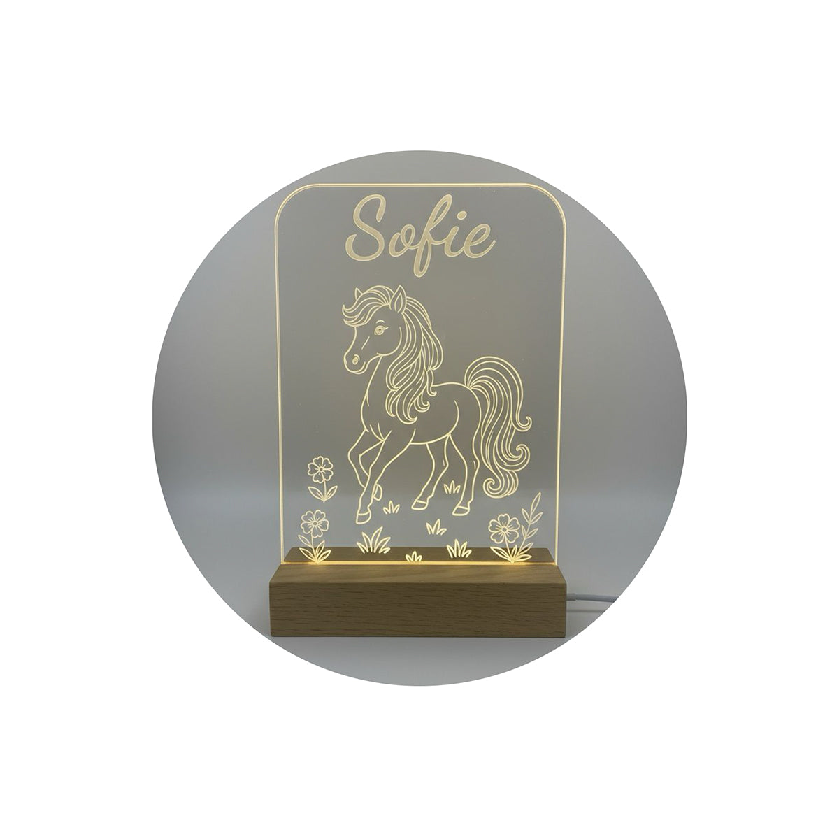 Voor Sofie maakten we dit vrolijke nachtlampje met haar naam en een schattig paardje. Het lampje geeft een warm licht en staat prachtig in elke kinderkamer. Natuurlijk kun je het helemaal laten maken zoals jij wilt, met een eigen naam, figuurtje of ontwerp.