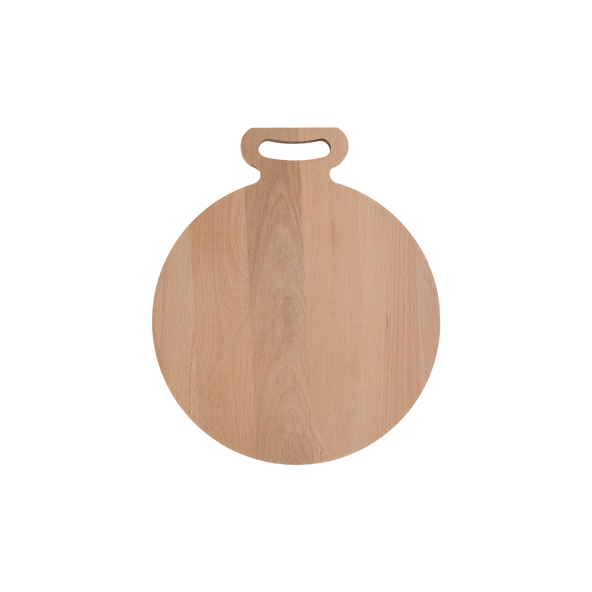Met deze ronde beukenhouten borrelplank serveer je hapjes in stijl! De lichte houtkleur laat jouw persoonlijke gravering — een naam, tekst of logo — extra mooi uitkomen. Zo maak je er in een handomdraai een uniek cadeau of eyecatcher voor je eigen keuken van.