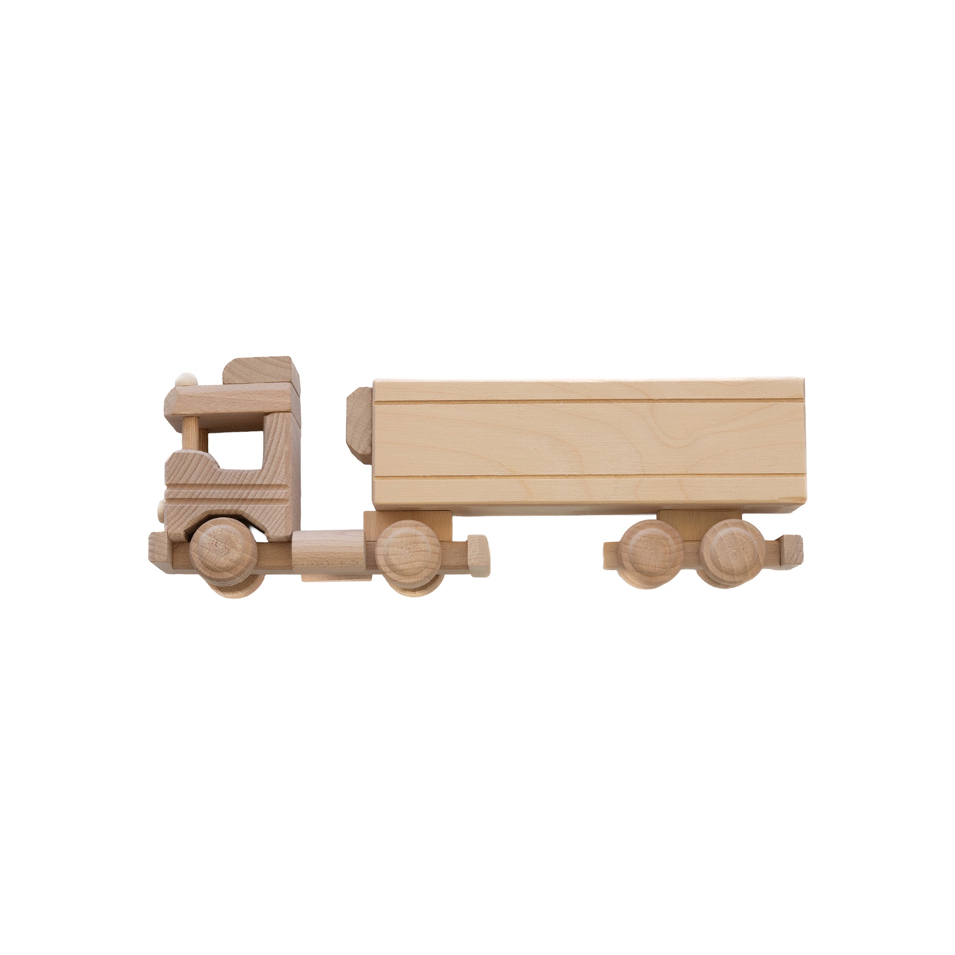 Hoe leuk is deze houten vrachtwagen met oplegger?! Gemaakt van stevig beukenhout en perfect om iemand blij mee te maken. De oplegger heeft een gleuf aan de bovenkant, dus hij is niet alleen mooi om te zien, maar ook superhandig als spaarpot.